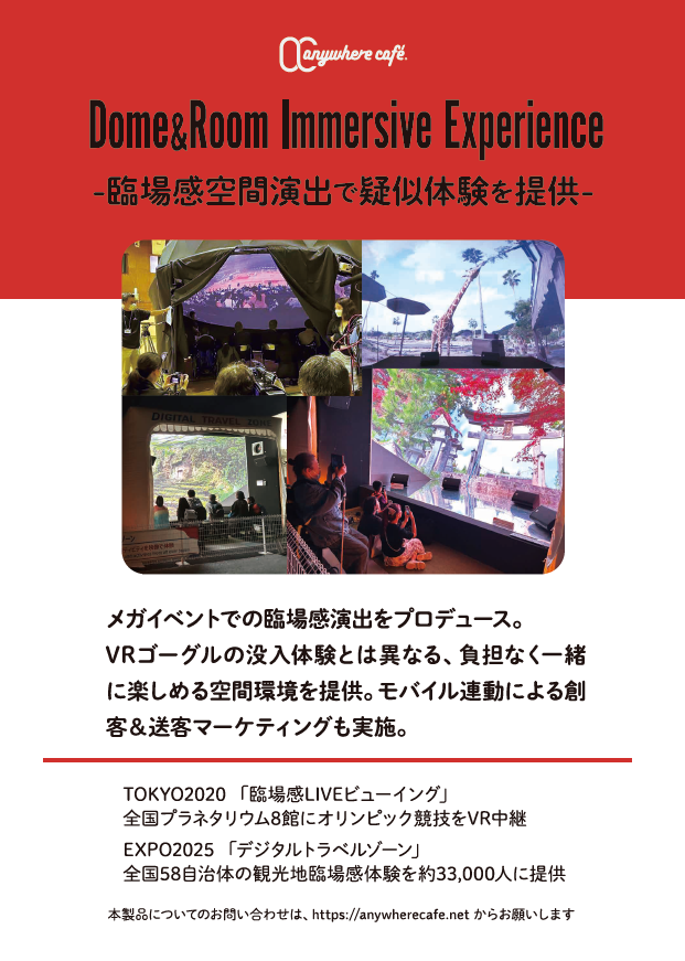 VRゴーグルの没入体験とは異なる、負担なく一緒に楽しめる空間環境を提供。モバイル連動による創客&送客マーケティングも実施。